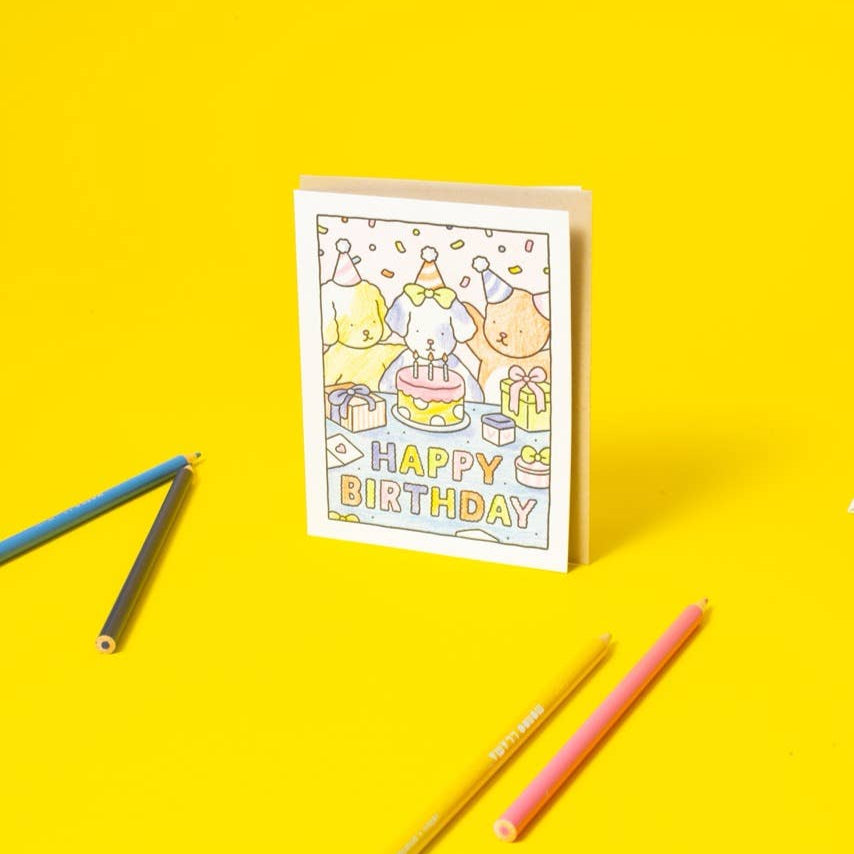 Happy Birthday Cake Party DIY Coloring Letterpress Card