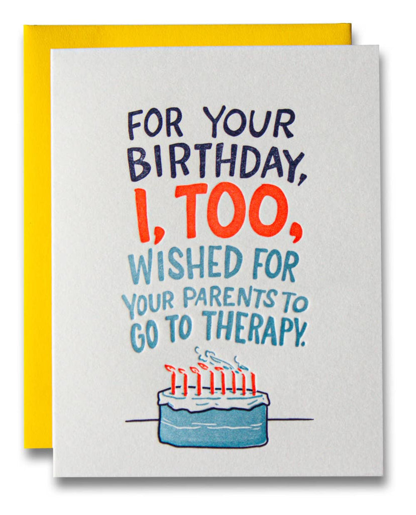 I Wished For Your Parents to Go to Therapy Birthday Letterpress Card