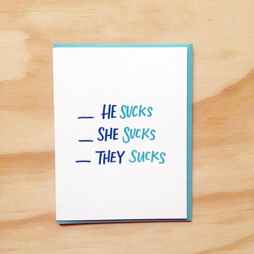 He She They Suck Letterpress Card