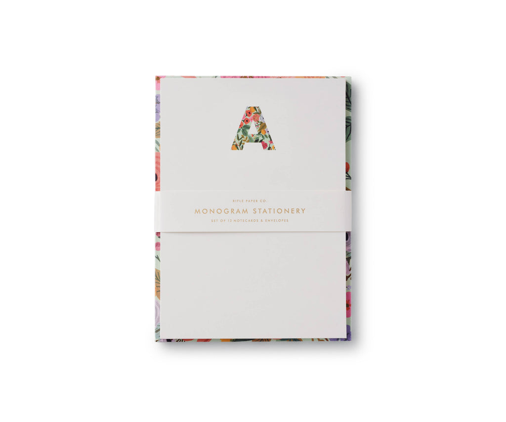 A stationery set, made just for you. Rifle's set of 12 monogram flat notes have your initial on once side and their Garden Party floral print on the reverse, plus coordinating envelopes.