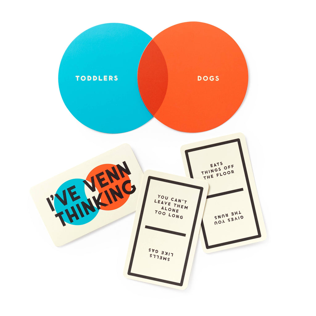 We have more in common than you might think. In fact, that's kind of the point of this game. This Venn diagram-based party game by Brass Monkey is all about finding (hopefully) hilarious similarities between two random (and we mean random) things. Just draw the included red and blue discs to create unexpected pairings (like the Month of February and Tom Cruise*) and then compete with friends to try to find the funniest thing that they both have in common.