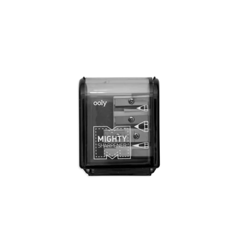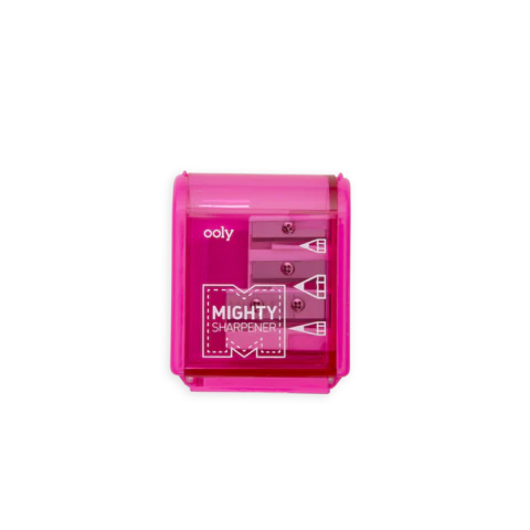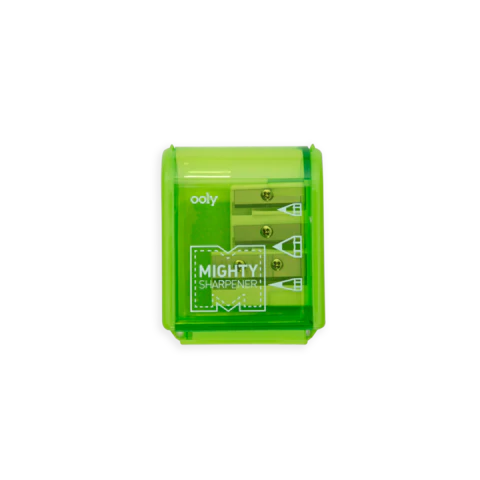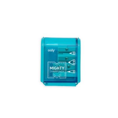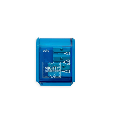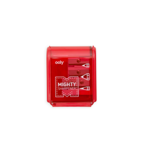 The Mighty Pencil Sharpener is a 3-hole pencil sharpener, one for regular sized pencils, one for larger pencils and one to sharpen for a really fine tip.