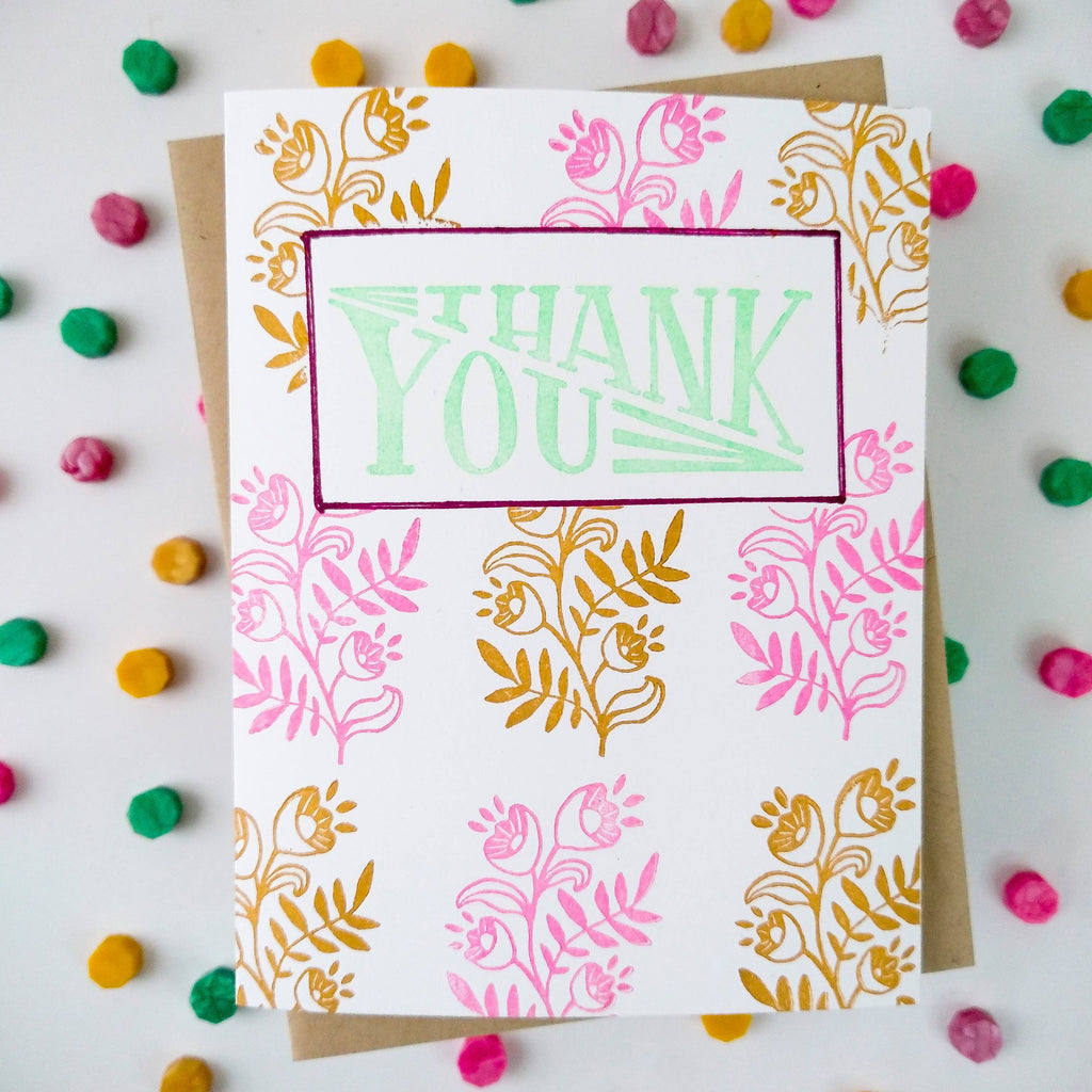 This Thank You rubber stamp is perfect for making thank you cards or notes. This rubber stamp has been illustrated with strong angles and in a vintage feeling style. All Peppercorn rubber stamps start out as hand illustrations. The artwork is then sent to our USA manufacturer who creates the rubber portion of the stamp. Then the rubber stamps are assembled and hand stamped in their studio.