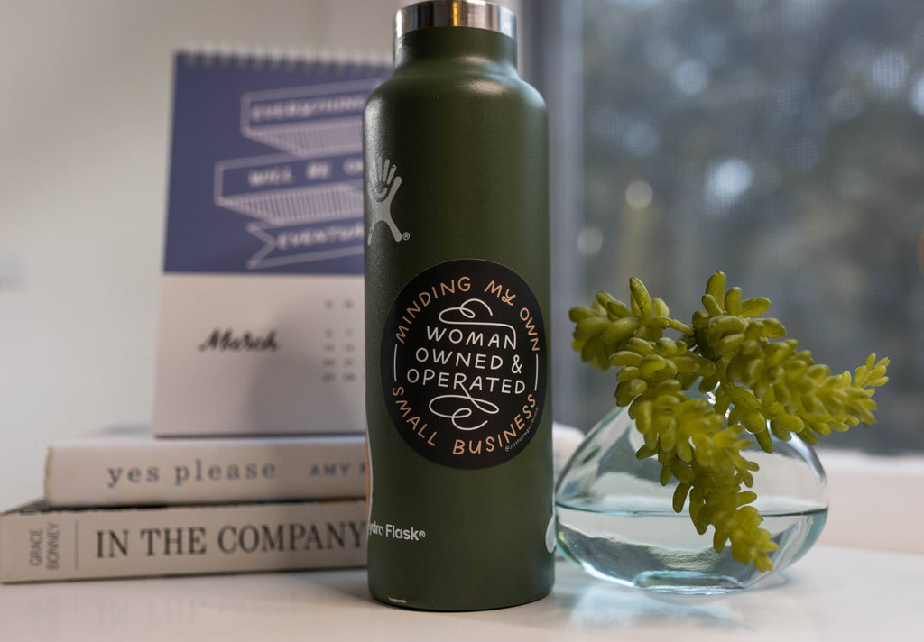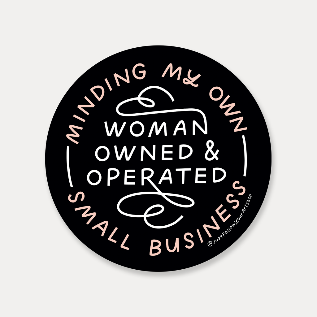 Minding My Own Woman Owned & Operated Small Business Sticker - Dark