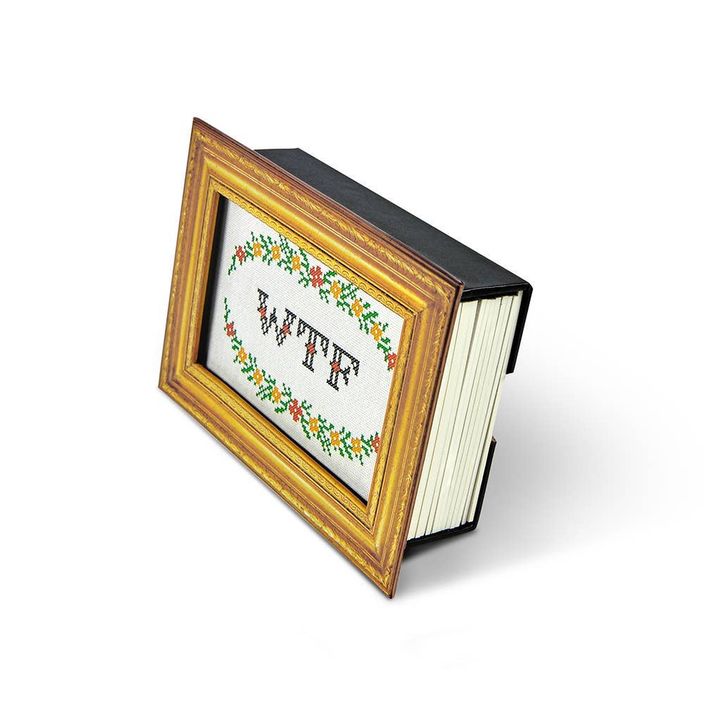 The Daily Sampler includes 32 desktop affirmations to display your mood on the good days, the bad days, and everything in-between, all nestled into a freestanding printed frame. Each 3”x5” card is made of sturdy paperboard.