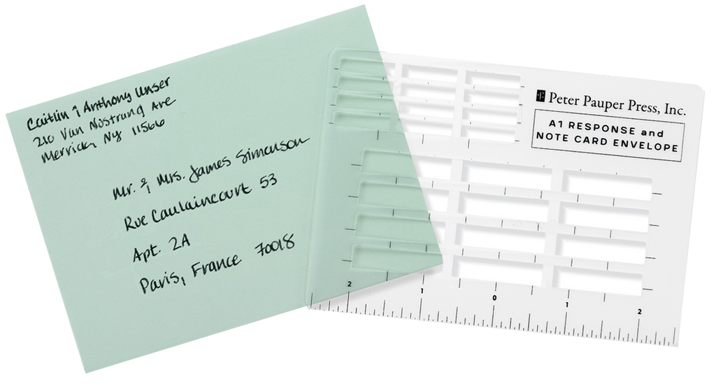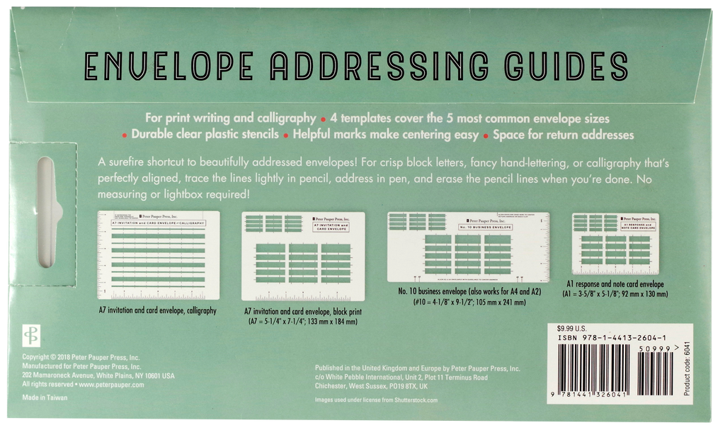 Perfectly address all your invitations, cards, letters, and other personal correspondence! Here is a surefire shortcut to beautifully-addressed envelopes: Simply place the appropriate stencil over your envelope and address in block letters for a crisp, neat look. For fancy hand-lettering or calligraphy that's perfectly aligned, trace the stencils lightly in pencil, letter in pen, and erase the pencil lines when you're done.