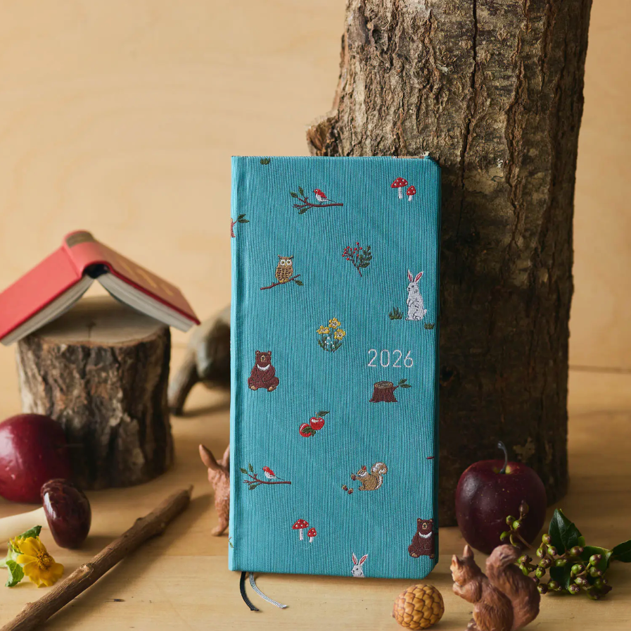 The Bow & Tie series features a distinctive cover made from the same textured, glossy fabric used in neckties. The luxurious feel and subtle sheen set this series apart from other Weeks books, making it a perennial bestseller. This design depicts animals in the forest—rabbits, owls, bears, and other creatures, along with flowers and birds. This charming design will bring joy and comfort to your heart all year long.